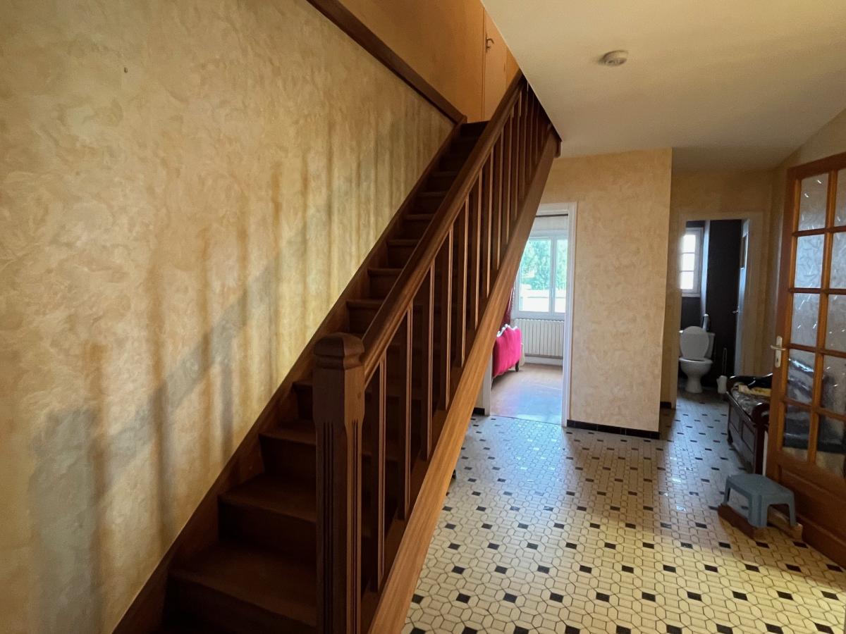 Ce pavillon sur sous-sol total, d'une surface habitable d'environ 137 m², comprend : Entrée, cuisine aménagée, arrière-cuisine, salon, salle à manger, dégagement desservant une chambre, salle d'eau, wc. A l'étage : 2 chambres, salle d'eau, wc. Grenier. Au sous-sol : atelier, chaufferie, garage. Cour et jardin, le tout sur un terrain de 590 m².