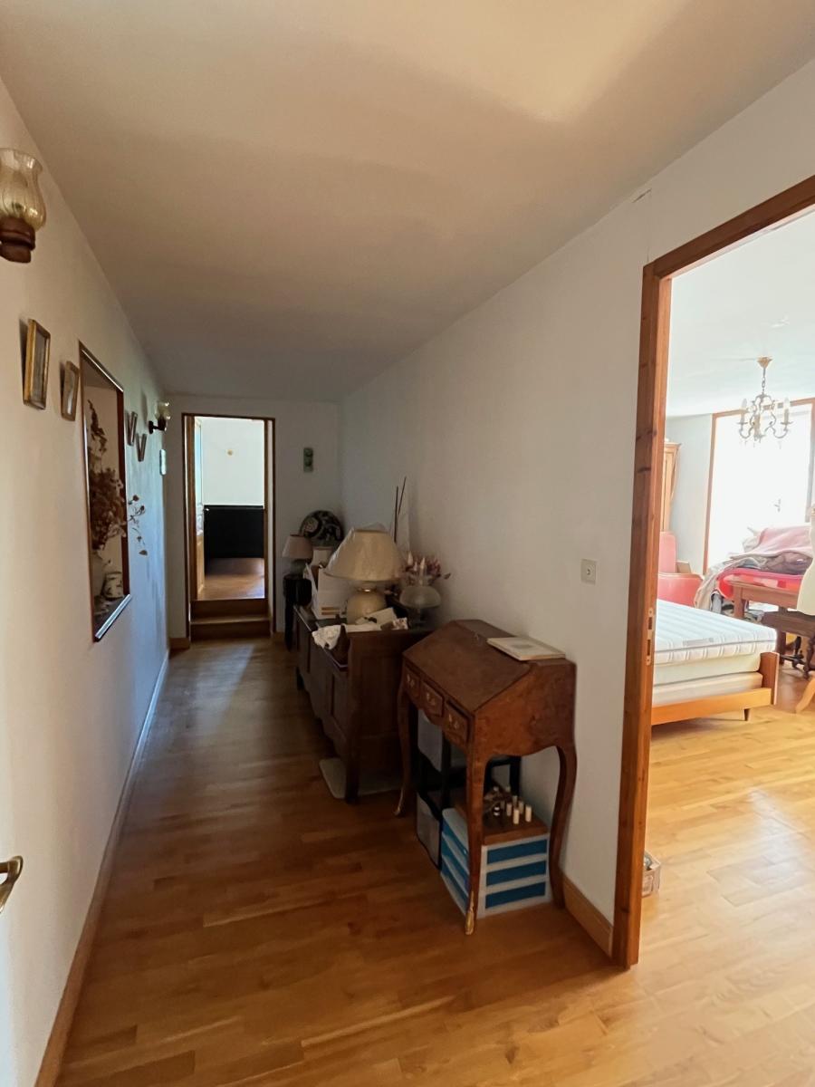 A l'étage : un couloir desservant 3 chambres, dont une avec un lavabo et wc. Grenier aménageable.