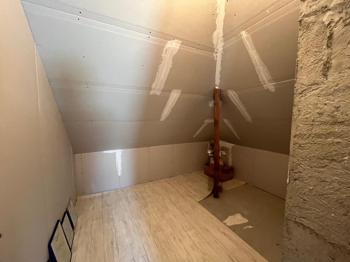 A l'étage : un palier dessert 3 chambres, un débarras, une pièce à aménager en salle d'eau.