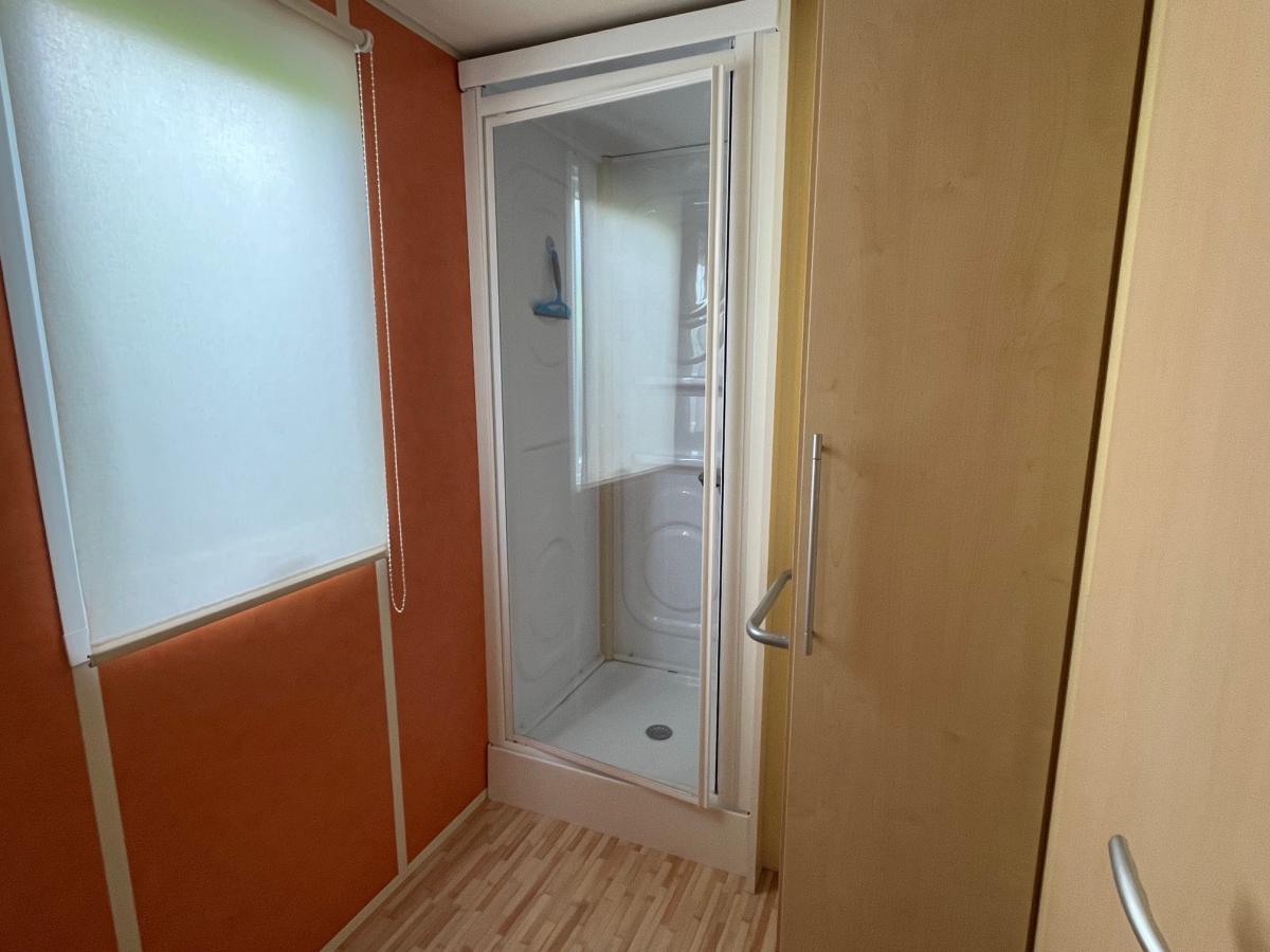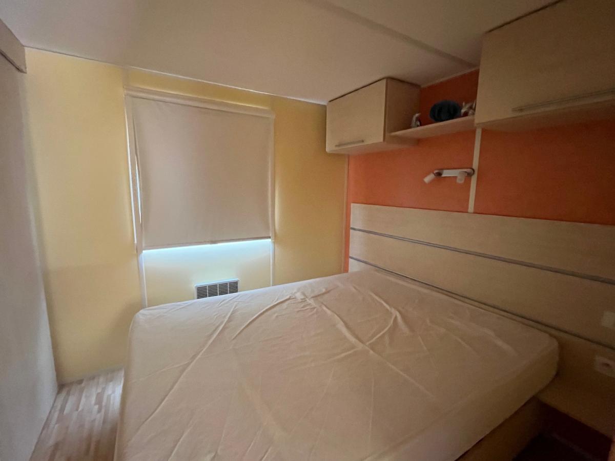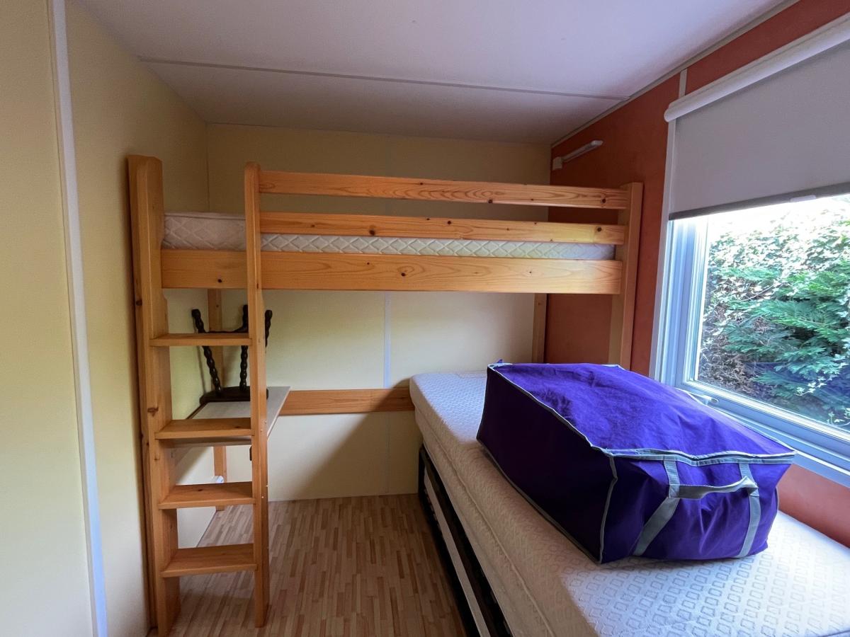 Dans un camping **** avec piscine, situé à environ 100 m de la plage, un terrain de 170 m² sur lequel vous trouverez un mobil-home comprenant :